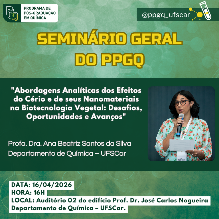 Local: Auditório 02 do edifício Prof. Dr. José Carlos Nogueira – Departamento de Química – UFSCar.